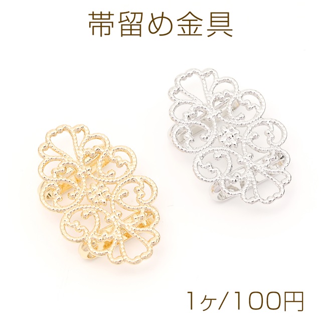 帯留め金具 オーバル型透かし台付き 縫付け 貼付け台座付き 23×30mm 1ヶ入り