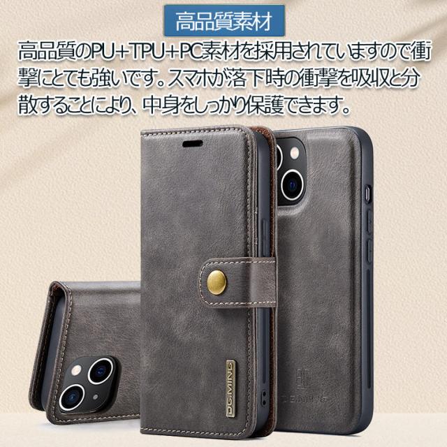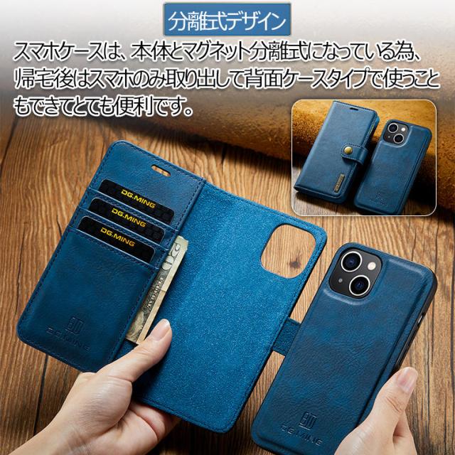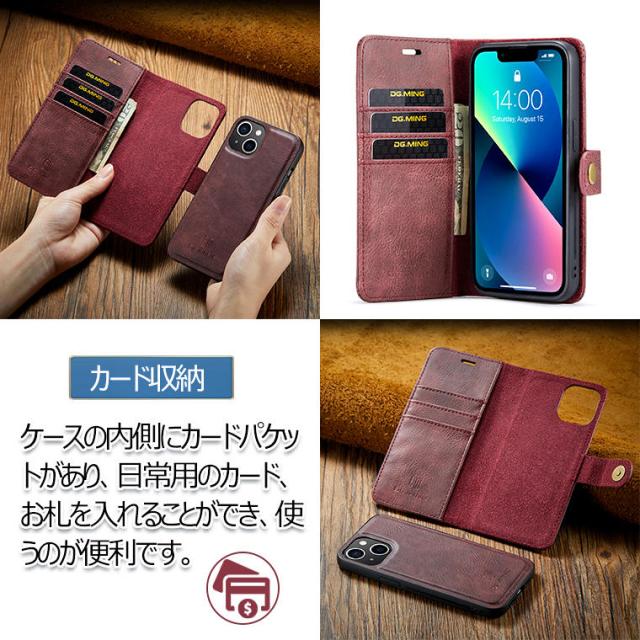 ●お財布、カード入れ、スマホケースが一体化になって、スマホケースは本体とマグネット分離式になっている為、帰宅後はスマホのみ取り出して背面ケースタイプで使うこともできてとっても便利。