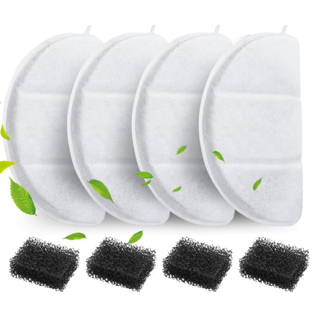 【商品情報】猫給水器交換用活性炭フィルター*4 ポンプ用スポンジ*4 コスパ抜群 1匹飼いの飼い主さんにおすすめ 素材:ヤシ殻活性炭、イオン交換樹脂、不織布、スポンジ ※ご注意:輸送中にスポンジが変形する場合があります。その場合は室温の水に10分間浸すだけで、すぐに形状が戻ります。