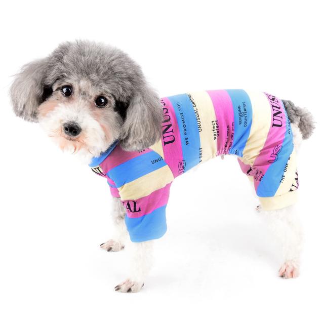 ZUNEA 犬服 春 夏 ロンパース 小型犬 つなぎ パジャマ 柔らかい 綿製 おしゃれ かわいい 部屋着 寝間着 ボーダー柄 ペット ドッグウエア