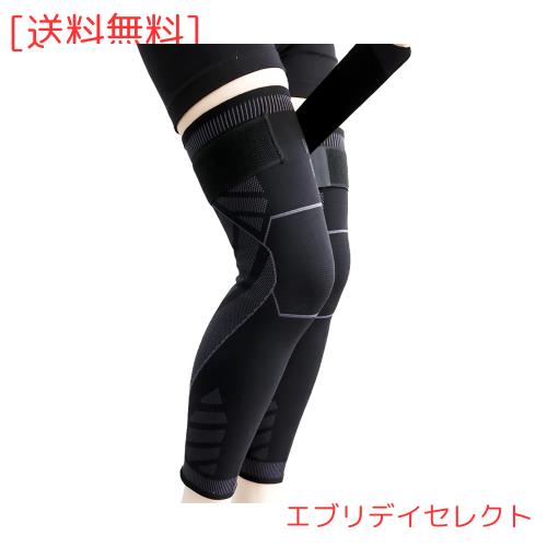 Goosom 膝サポーター(スーパーロング)(2枚入り)ロングサポーター 膝 ふくらはぎ サポーター スポーツ用 ひざ用 調整可能 加圧ベルト 滑り