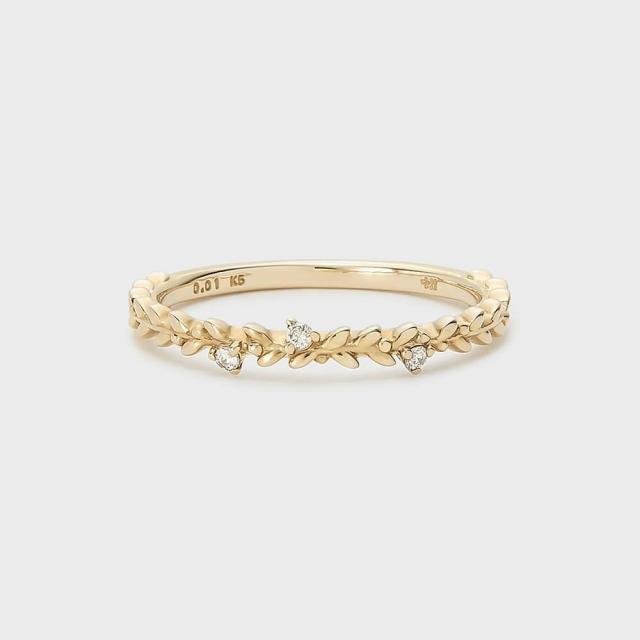 ローリエクラウン(月桂冠)をモチーフにしたピンキーリング。古代ギリシャで競技の勝者に贈られていた月桂樹の葉冠。「栄光」の花言葉を持つ月桂樹に、「永遠」を意味するダイヤモンドをあしらい、さり気ない煌めきを添えました。相手からよく見える小指だからこそ、リングアーム側面のデザインにこだわって選ぶのがおすすめ。※サイズ直しプラスマイナス2号迄。※天然石や天然素材を使用しているものは、サイズ・色味・風合いの違いや、若干の傷、内包物の有無などに個体差があります。予めご了承ください。