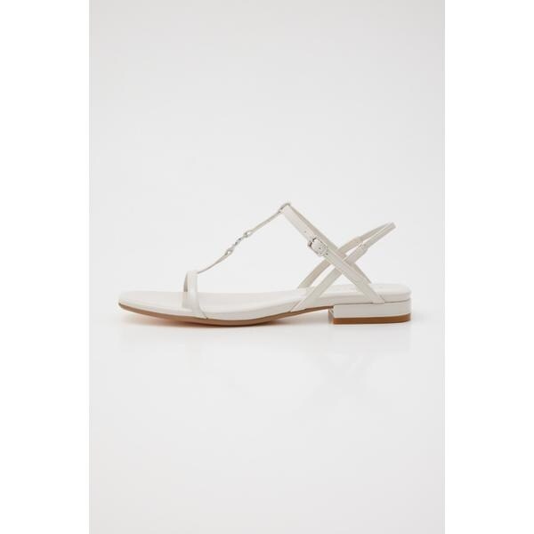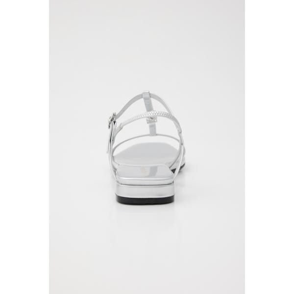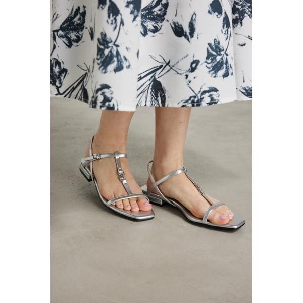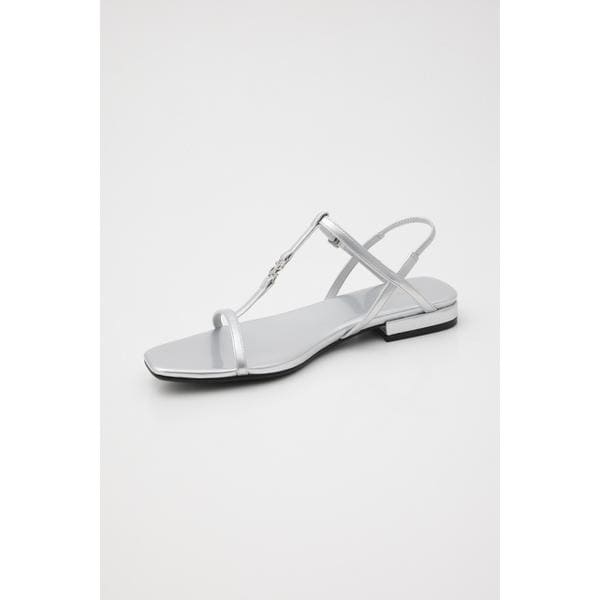 【RRロゴパーツがポイントになるフラットサンダル】【Design】オリジナルで型を起こして作ったRRロゴパーツをフロント中央部に施し、シンプルな中にインパクトのある1足に仕上げました。サッと履けるけど歩きやすいように拘って作っているので、足首のストラップ部分はゴムを使用し、楽に伸ばして履ける仕様にしています。【Color】どんなお洋服にもマッチしやすいBLK、IVOYとトレンドのSLVの3色展開です。