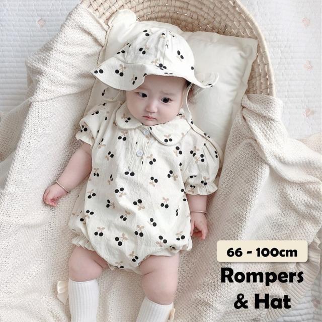ロンパース カバーオール 半袖 帽子セット ぼうし ベビー服 ベビー キッズ 赤ちゃん 乳児 女の子 子供服 スナップボタン 襟