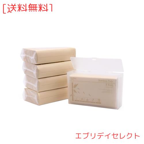 Dr Dirt ペーパータオル 5つ折り 2プライ 110枚 竹製使い捨てナプキン 壁掛けディスペンサーボックスカバーホルダー付き 家庭やキッチン用 (5個入り(ティッシュBOX×1個付))
