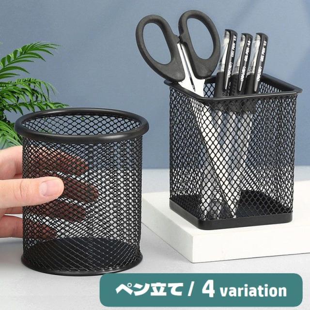 ペン立て ペンスタンド 鉛筆立て 文房具入れ 筆立て ペンホルダー 円形 四角形 金網 シンプル 定番 小物入れ 収納 机上 卓