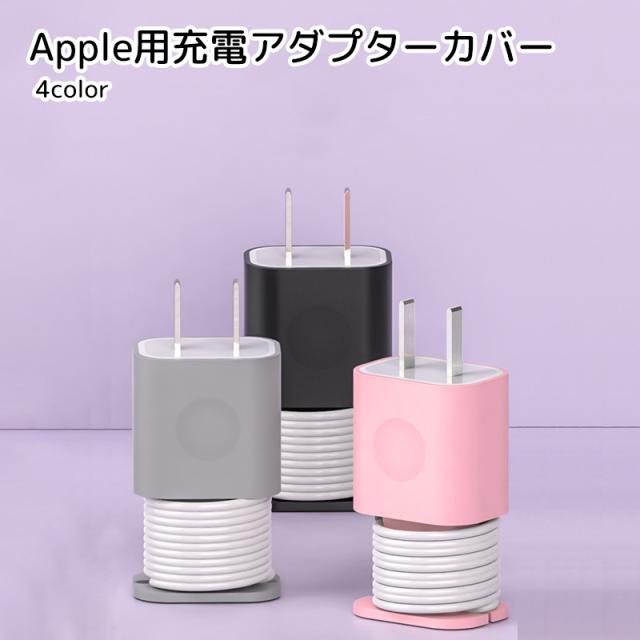Apple製品用充電アダプターカバー スマホ用品 PC用品 ホワイト ブラック シリコン ケーブル巻き取り 傷防止 落下保護