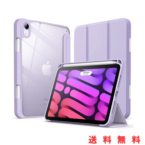 JETech iPad Mini 6 (8,3インチ 2021年モデル) 用ケースペンシルホルダー付き透明後面シェルスリム標準耐衝撃タブレットシューズカバー