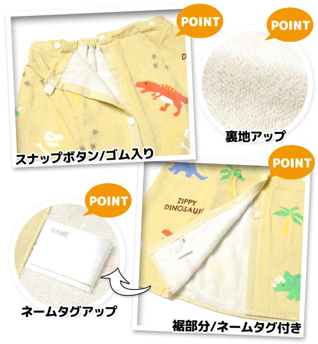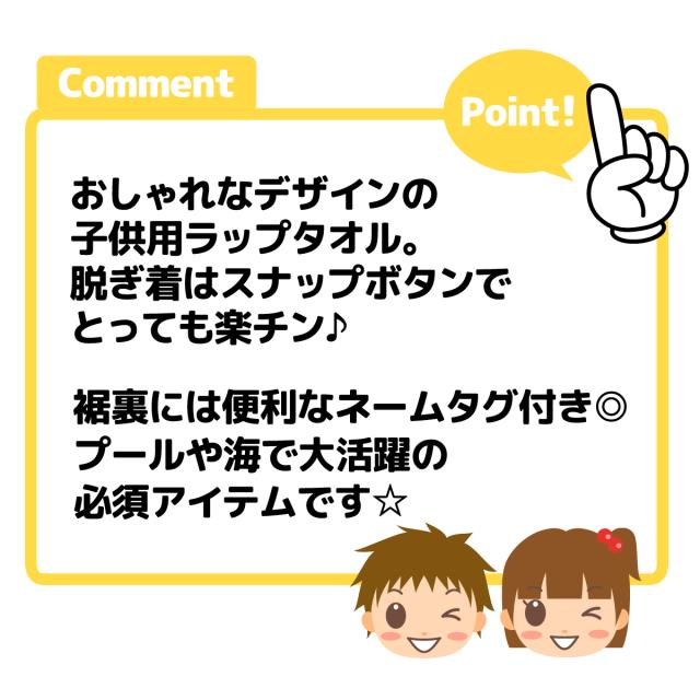 【送料無料】男児 女児 キッズ ラップタオル 60cm丈 綿100% スナップボタン ネームタグ付き イチゴ スイカ サメ 恐竜 昆虫 ペンギン しろくま 子供 男の子 女の子 yg-2401【メール便対応】