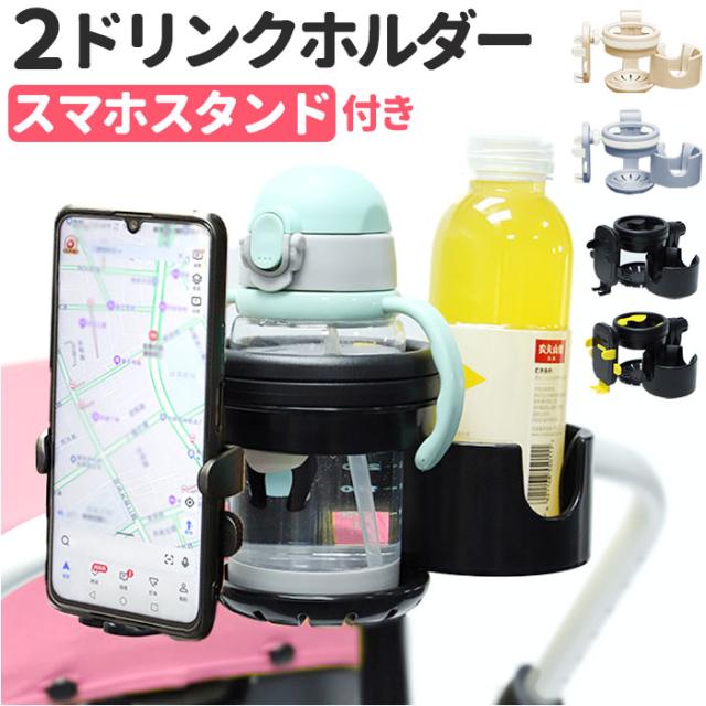 ベビーカードリンクホルダー スマホ対応 通販 スマホスタンド マグホルダー 哺乳瓶ホルダー 2ドリンクホルダー 折り畳み 2個 2in1 軽量 軽い 収納 便利 スマホ ベビー用