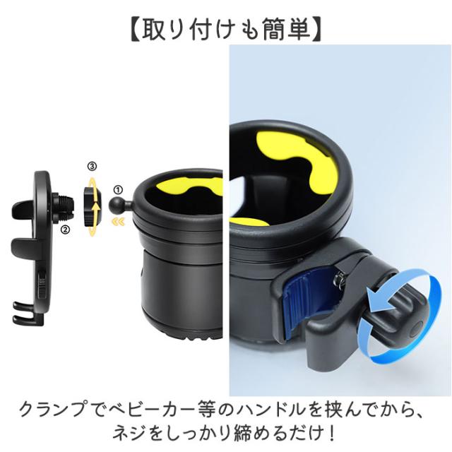 | 商品説明 | 【赤ちゃんと楽しいお出かけに】 ・スマホ対応のドリンクホルダーで、ベビーカーでの移動をより便利にできるアイテム。 【嬉しいスマホ対応】 ・ドリンクだけでなくスマホスタンド付きなのも魅力。ハンズフリー通話やマップが見やすい♪ 【片手で着脱】 ・スマホスタンドはスマホでボタンを押すだけで、アームが自動で抑えてくれる◎ 【充電しながらの使用もOK】 ・下部のアームには充電口にホールがあり、充電しながら使用できるのもGOOD。 【位置や角度など微調整が可能】 ・スマホスタンドの位置が左右に動き、付け根部分は360度回転するので縦横どちらもOK 【赤ちゃんのマグも一緒に】 ・ドリンクホルダーの下部をスライドするとサブホルダーが出るので、赤ちゃん用のマグ入れに。 【タンブラーやカフェのプラコップも】 ・メインホルダーは直径約8cm。タンブラーやカフェの持ち帰りコップにも対応。 【取り付けも簡単】 ・クランプでベビーカー等のハンドルを挟んでから、ネジをしっかり締めるだけ! 【バギーや自転車にも】 ・ベビーカーはもちろん、バギーや自転車にも対応。1つあるだけで様々なシーンで活躍。 |