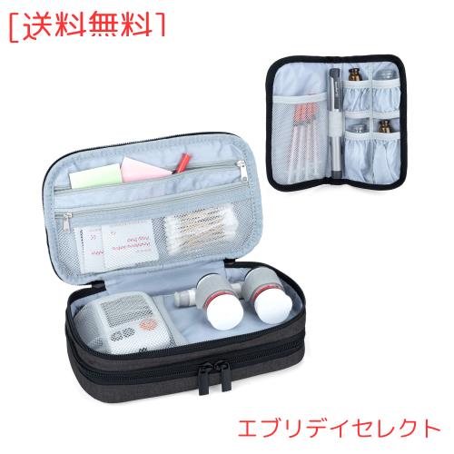 Luxja インスリンポーチ 二層式 血糖測定・インスリン注射用品 まとめて収納 (保冷剤なし) 黒