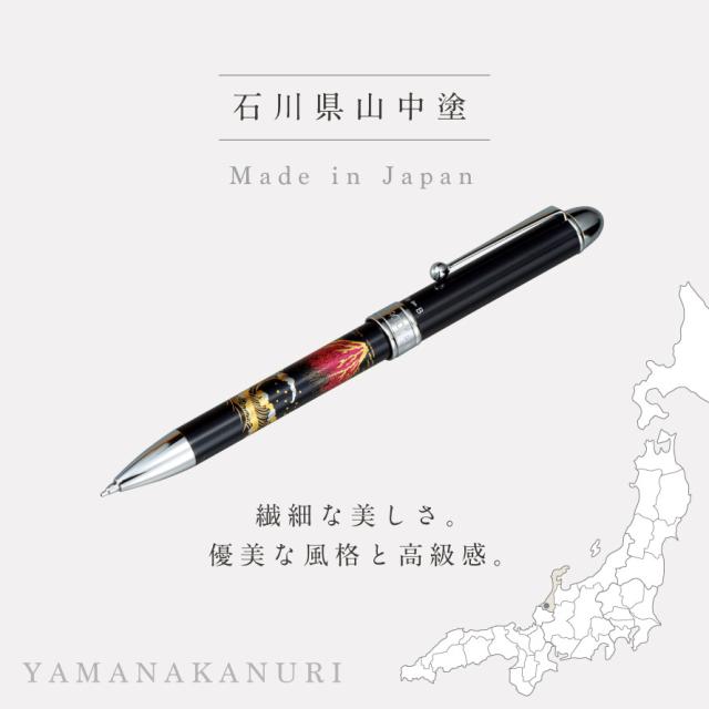 花鳥風月伝統の蒔絵柄をモチーフ、高級感のある上品な多機能ペン。日本伝統の漆芸をモダンにアレンジ、実用的な多機能ペンにデザインしました。