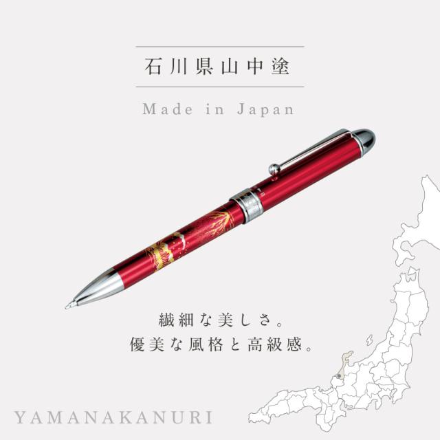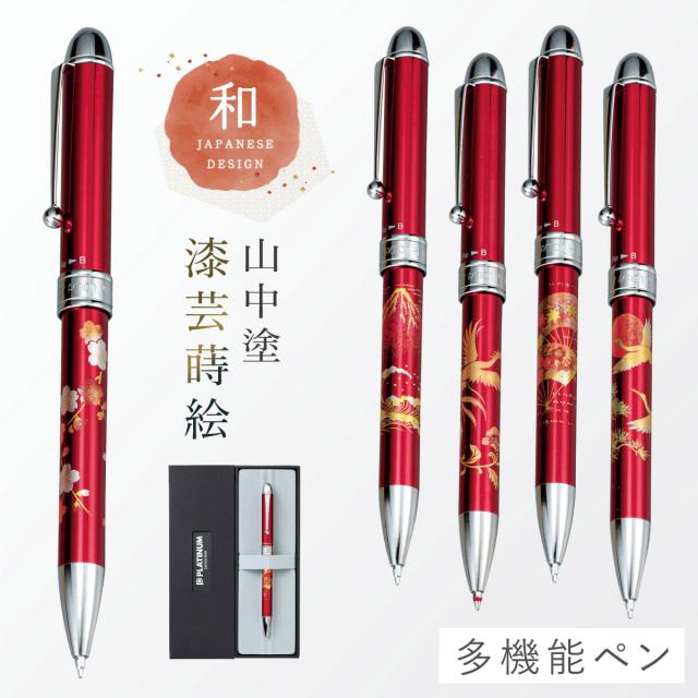 ボールペン 和風 蒔絵 高級 海外 お土産 記念品 ギフト プレゼント 多機能ボールペン(黒・赤) シャープペンシル 外国人が喜ぶ 日本のお土産 和柄 和雑貨 日本 モチーフ 山中塗 プラチナ漆芸多機能ペン(エンジ) 誕生日