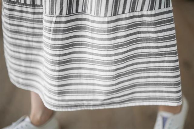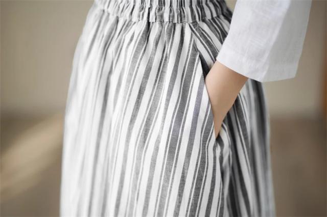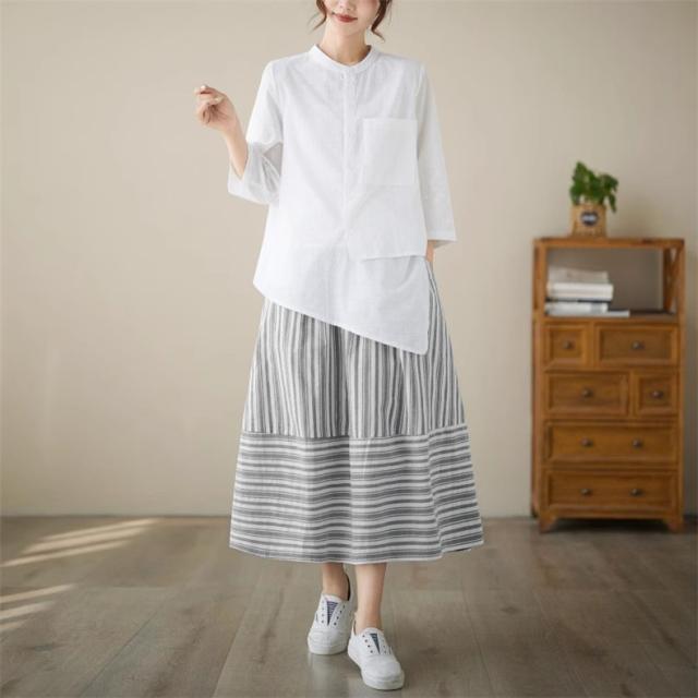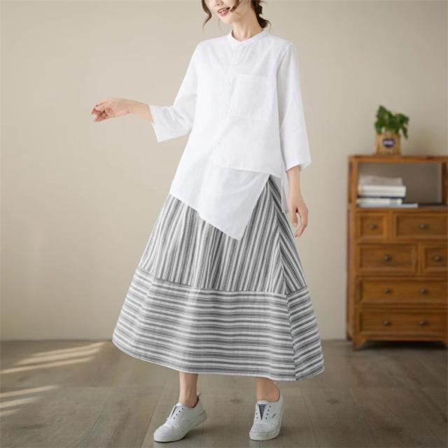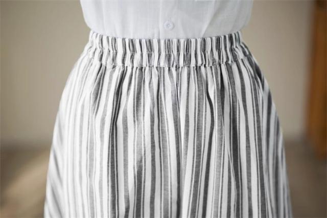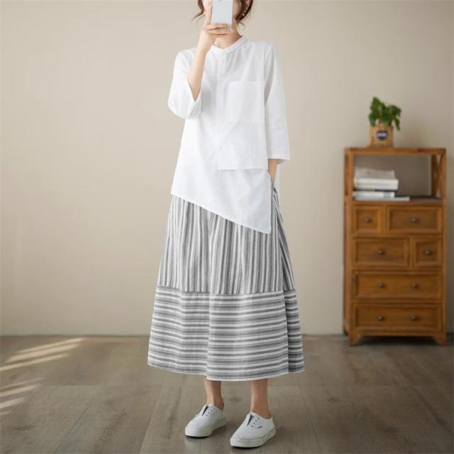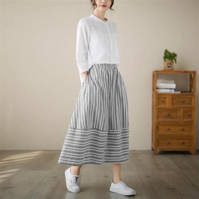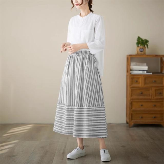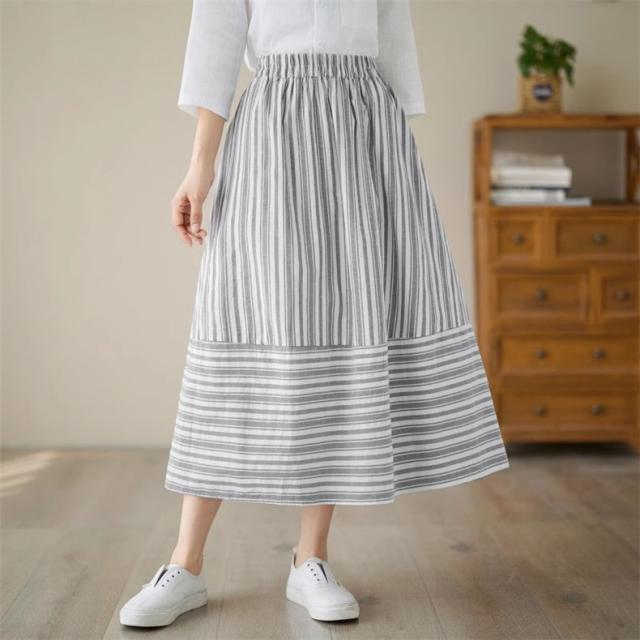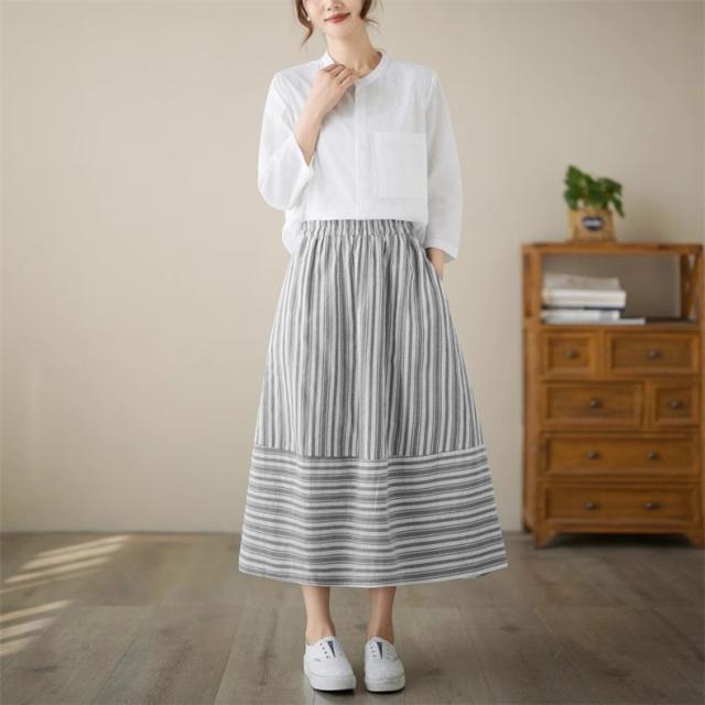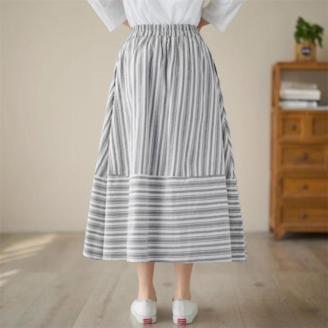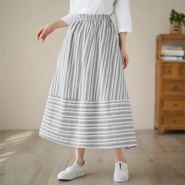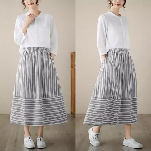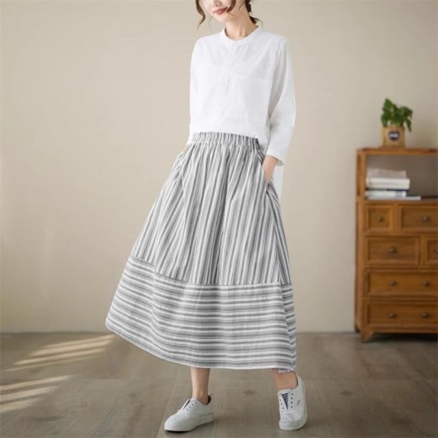 スカート レディース 春夏ボトムス ウエストゴム ストライプスカート 綿コットン 大きいサイズ BIGロングスカート 程よいゆったり感で履き心地がいい