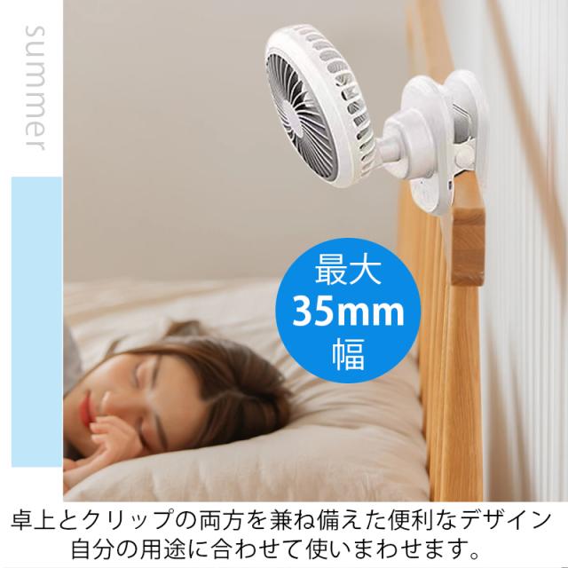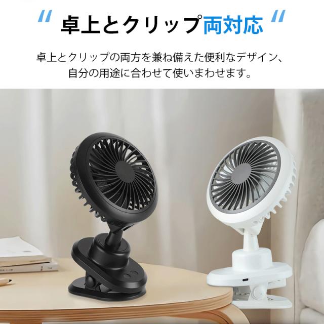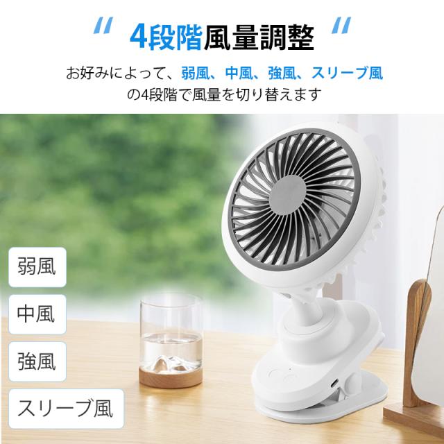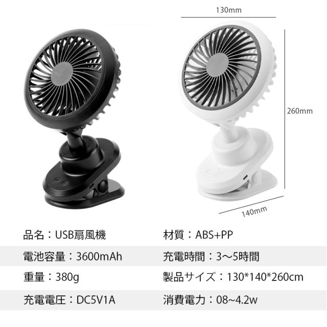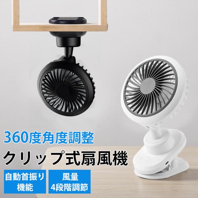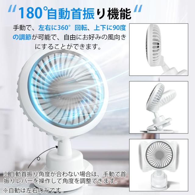 USB扇風機 卓上扇風機 クリップ 自動首振り 3600mah 360度角度調整 風量4段階調節 スリーブ風モード 超薄6枚羽根 超静音 大風量 長時間連続使用 ミニ扇風機 小型 節電 強力 熱中症対策 日本語説明書付き