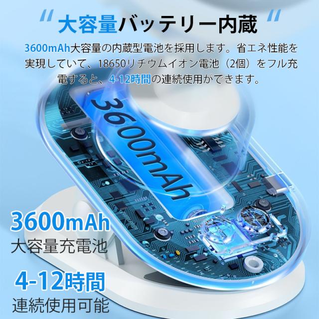 3600mAh大容量の内蔵型電池を採用します。省エネ性能を実現していて、18650リチウムイオン電池(2個)をフル充電すると、4-12時間の連続使用ができます。