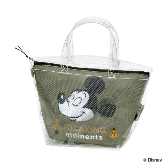 大人っぽいミッキーのデザインのメッシュインナーポーチ付きクリアバッグです。サウナや銭湯、夏の行楽におすすめ。中身が見えにくいインナーポーチです。