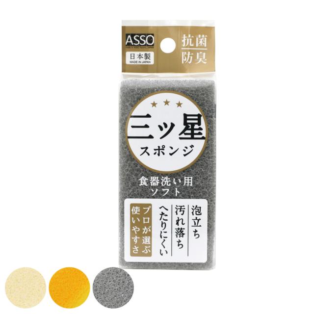 キッチンスポンジ ASSO 三ツ星スポンジ 食器洗い用 ソフト ( スポンジ 抗菌 防臭 キッチンクリーナー 日本製 食器洗い 長持ち 丈夫 食器用スポンジ 食器用 お皿 コップ クリーナー キッチン用スポンジ 食器スポンジ 耐久性 速乾 )