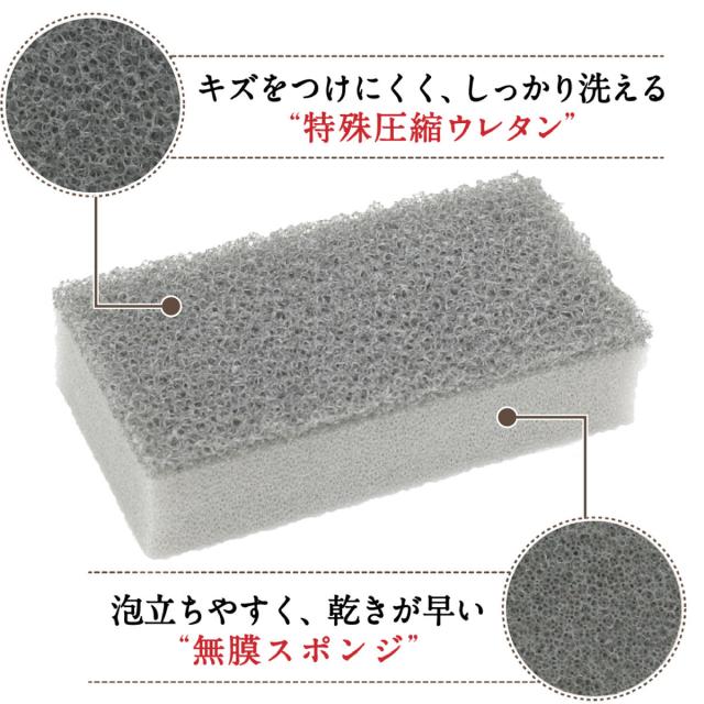 膜なしスポンジを特殊圧縮した、型崩れや変形を起こしにくい丈夫なスポンジです。泡立ちがよく水切れも良いので、乾きやすく衛生的にお使いいただけます。