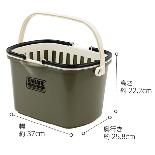 バスケット カーゴバケツ 収納 洗える ( 幅37×奥行25.8×高さ22.2cm 日本製 かご カゴ バケツ 小物 小物入れ 小物収納 小物ケース ホースホルダー付き 角型 メモリ付き 持ち手付き おしゃれ 洗車 キャンプ アウトドア ランドリー )