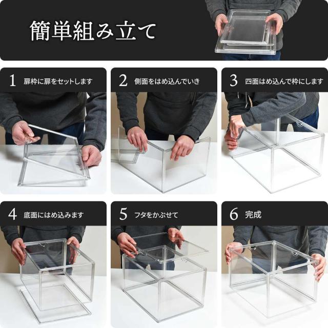 収納ケース マルチクリアボックス 6個セット 幅36×奥行27×高さ22.5cm ( 収納ボックス コレクションケース 靴箱 ディスプレイ ボックス ケース 収納 透明 見せる収納 積み重ね サイドオープン マグネット フィギュア シューズ 6個 )