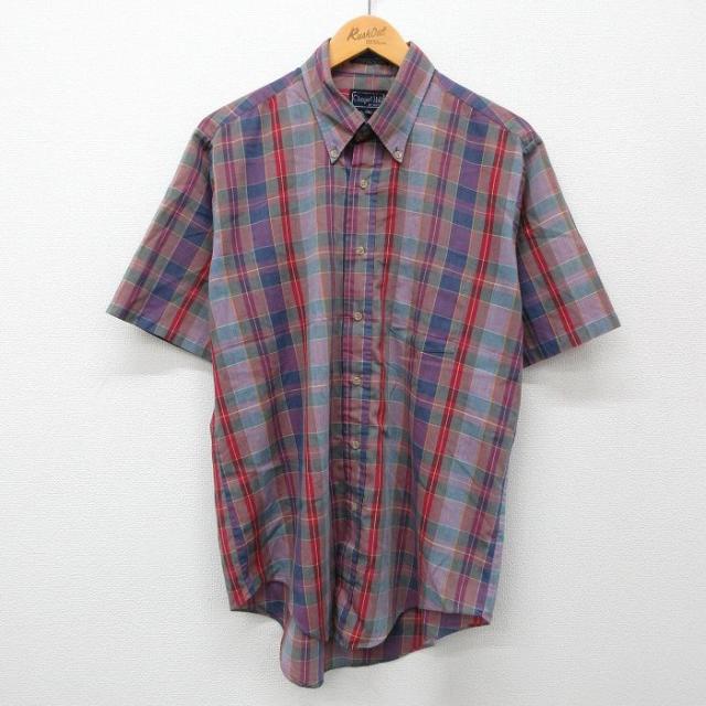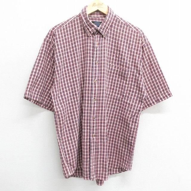 古着 半袖 シャツ メンズ 00年代 00s ボタンダウン 赤他 レッド チェック Lサイズ 中古 トップス 中古 古着