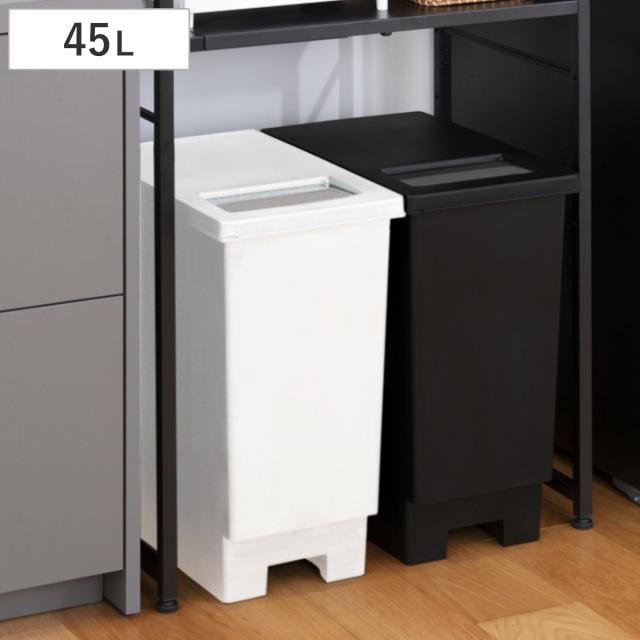 ゴミ箱 45L ユニード プッシュ&オープンペール ( ごみ箱 45リットル プッシュ 小窓 キッチン シンプル ふた付き 分別 45 袋止め付き スリム 角型 おしゃれ ゴミ箱 45リットル ゴミ箱 分別 ゴミ箱 ふた付き キッチン ゴミ箱)