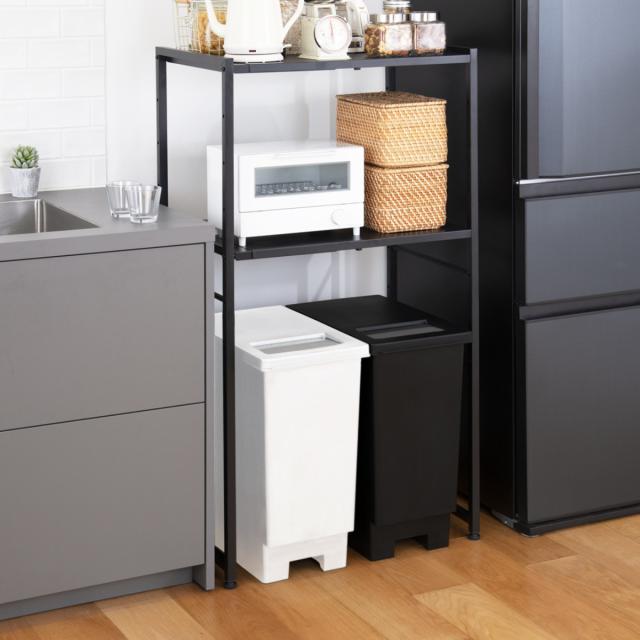 大きなゴミを捨てる時は、必要な分だけフタを開けてゴミを入れられます。フタを開く高さを調節できるので、棚下でもお使いいただけます。