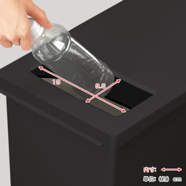 フタを大きく開けなくても、小さめのゴミならプッシュフタからサッと捨てられます。手前から奥に向かって落ちるように設計されており、ゴミが片寄らずに均一に入るのがポイントです。
