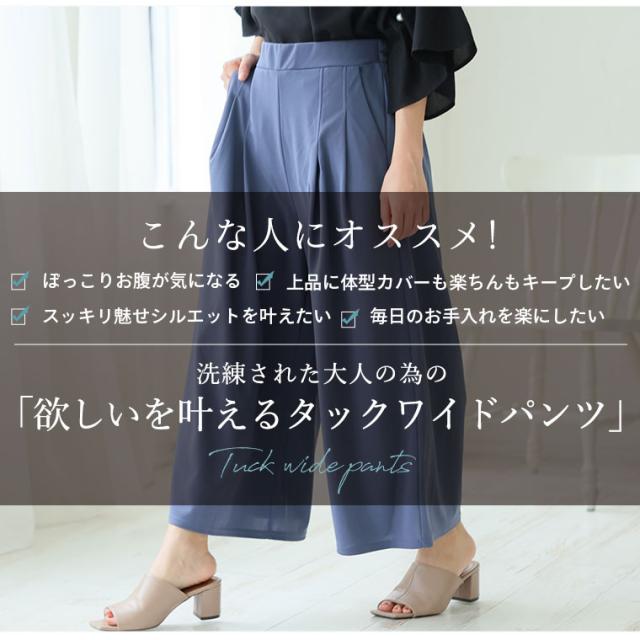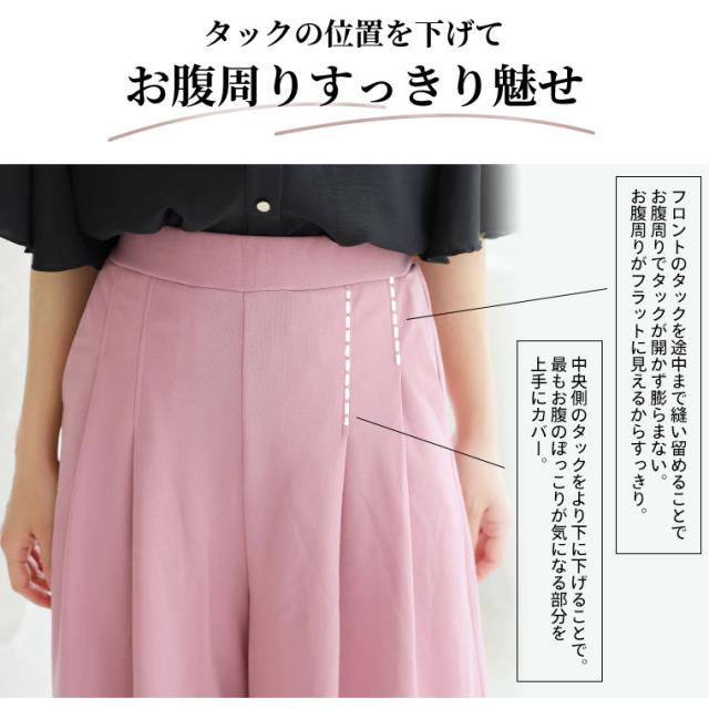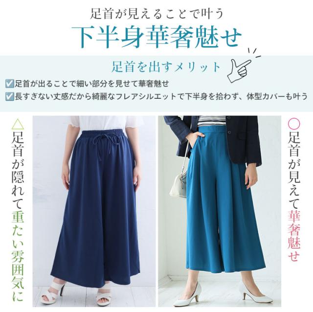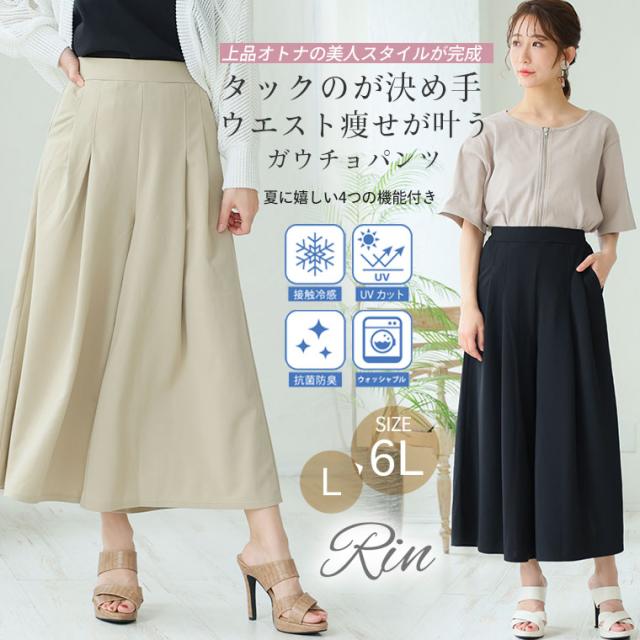 新作 大きいサイズ レディース パンツ | Rin 夏のお悩みを凛とカバー 4つの機能付 ウエストタックでお腹スッキリ 足首みせで着痩せ効果 ガウチョパンツ [861275] LL 3L 4L 5L 6L