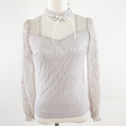 【中古】ハニーシナモン Honey Cinnamon カットソー レース 長袖 グレー F *A273 レディース
