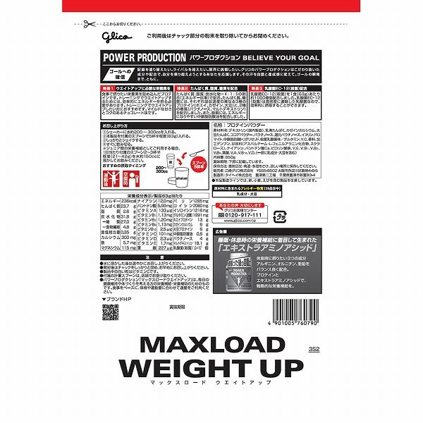 グリコ パワープロダクション プロテイン マックスロード ウエイトアップ 850g チョコレート味 G76079 江崎グリコ ぐりこ Glico POWER PRODUCTION MAXLOAD WEIGHT UP PROTEIN ウェイトアップ 粉末 タンパク質 サプリメント トレーニング 栄養補給 健康 体 身体 muscle body チョコ味 ココア CHOCOLATE COCOA 増量 850グラム 0.85Kg sport sports スポーツ レクリエーション 競技 4901005760790 506591130