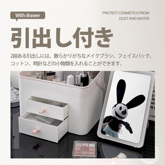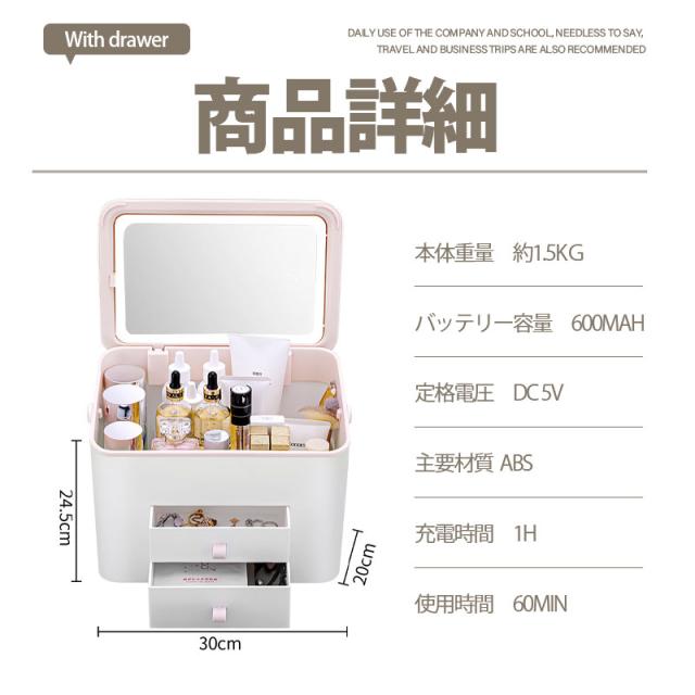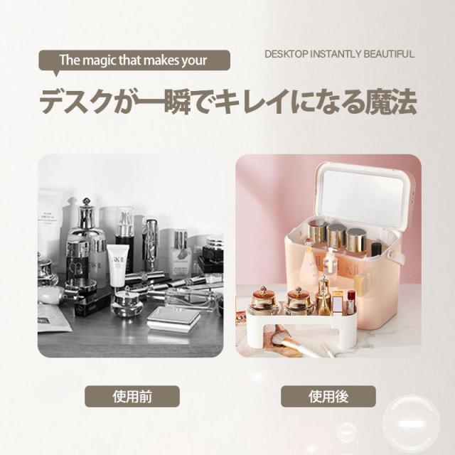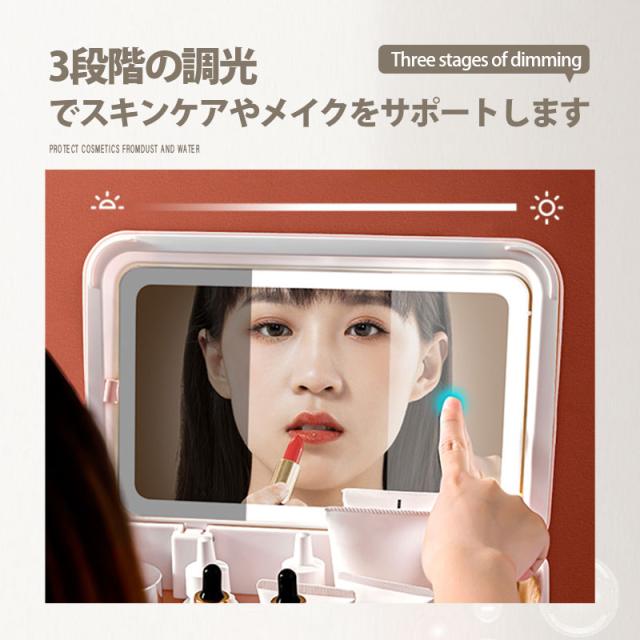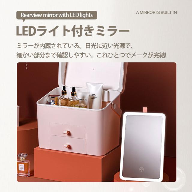 【水曜日まで!10%クーポン配布中】 メイクボックス 鏡付き コスメボックス LEDライト USB充電 3色調光 大容量 持ち運びに便利な 軽量 収納ボックス 防塵 防