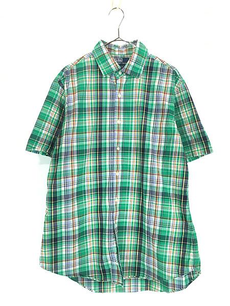 古着 Polo Ralph Lauren 「BRADFORD CUSTOM FIT」 マルチ チェック 半袖 ワイドカラー シャツ L 古着