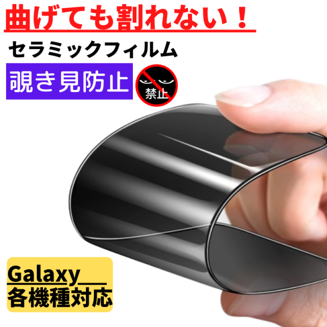 Galaxy セラミック 覗き見防止 フィルム 割れない 保護フィルム 全面保護 指紋防止 飛散防止 自動吸着 気泡防止 硬度9H 耐衝撃 光沢 S24 S24 Ultra S23 S22 S21 サムスン ギャラクシー 指紋認証非対応