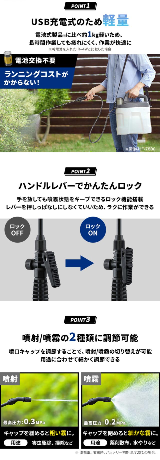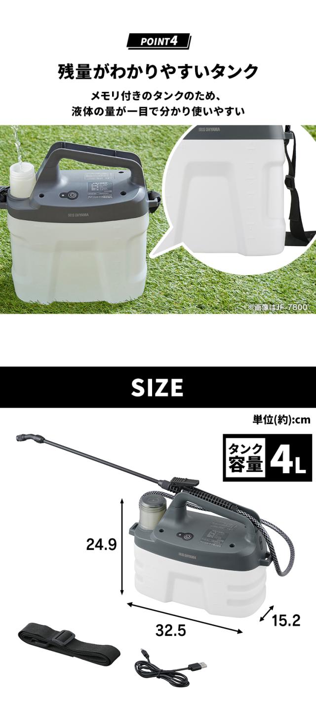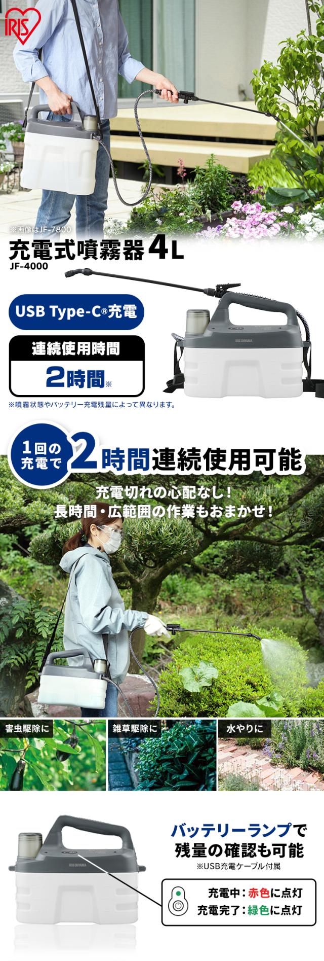 噴霧器 除草剤 ノズル 4L 電動噴霧器 充電式噴霧器 電動 充電式 散布 薬剤 消毒 雑草駆除 害虫駆除 水やり 液肥 バッテリー式 コードレス 家庭菜園 ガーデニング 園芸用品 充電式噴霧器 ホワイト/グレー アイリスオーヤマ JF-4000