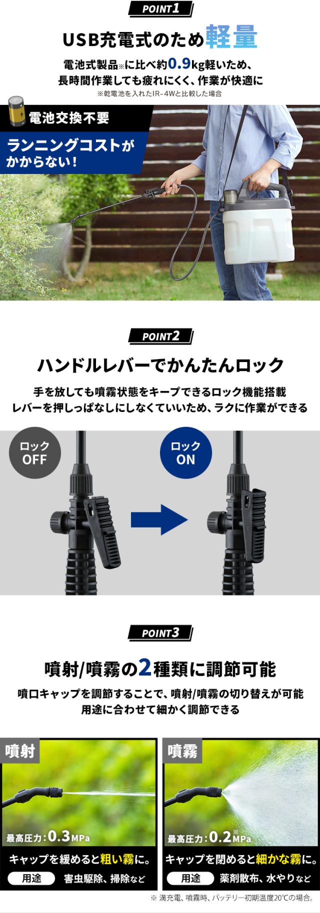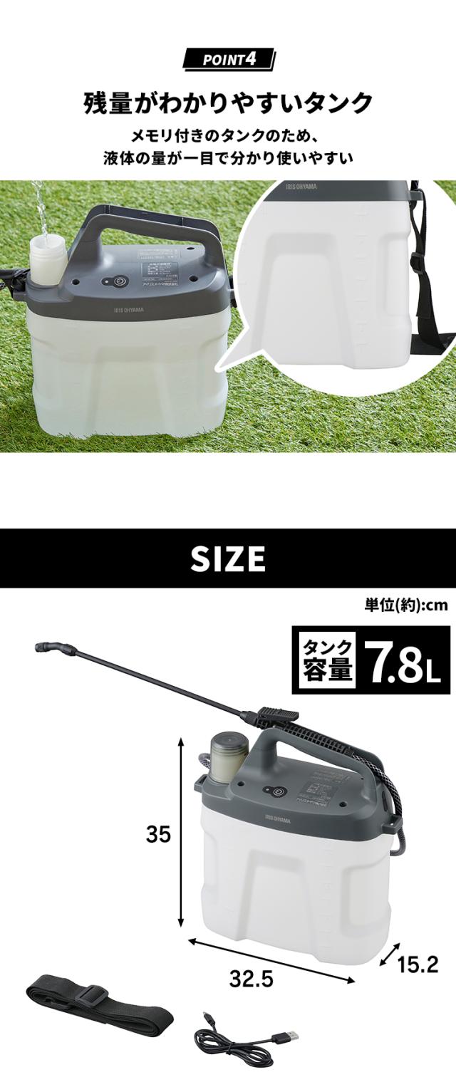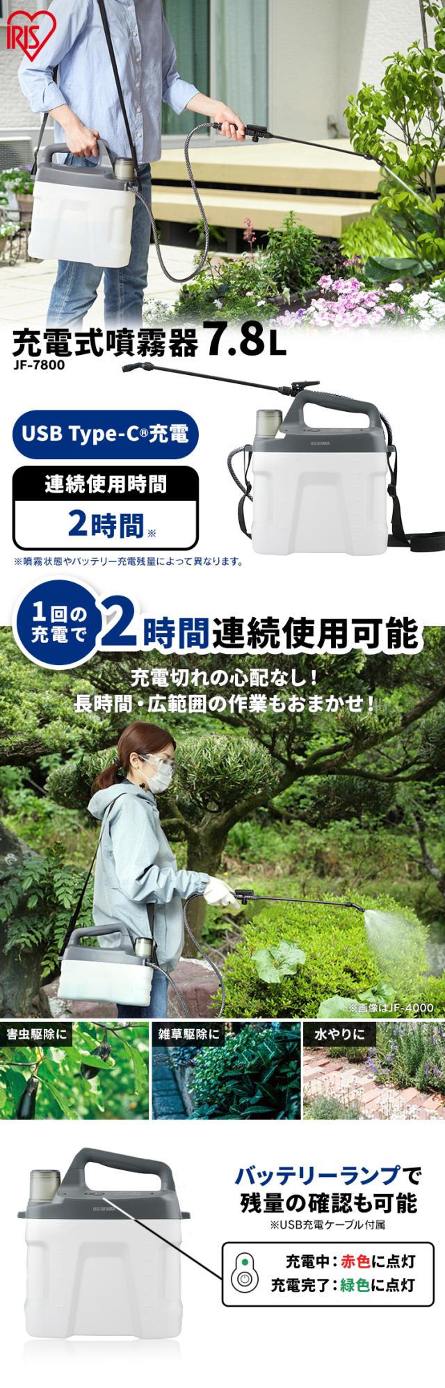 噴霧器 除草剤 ノズル 7.8L 電動噴霧器 充電式噴霧器 電動 充電式 散布 薬剤 消毒 雑草駆除 害虫駆除 水やり 液肥 バッテリー式 コードレス 家庭菜園 ガーデニング 園芸用品 充電式噴霧器 ホワイト/グレー アイリスオーヤマ JF-7800