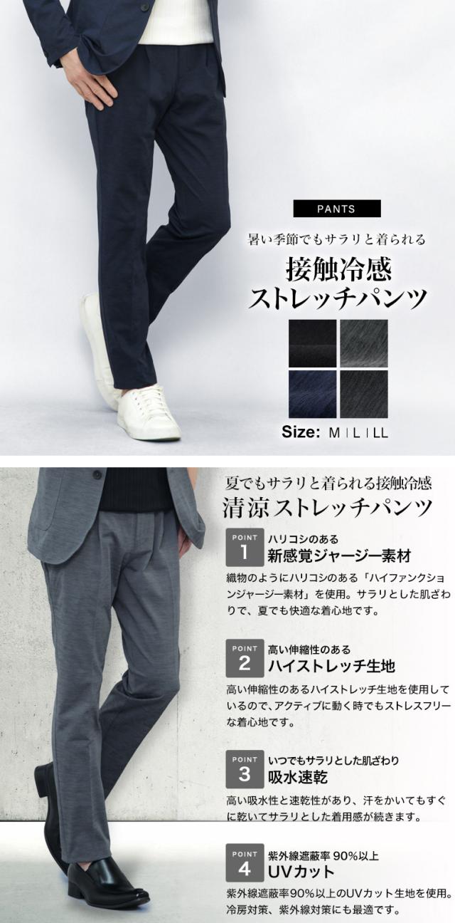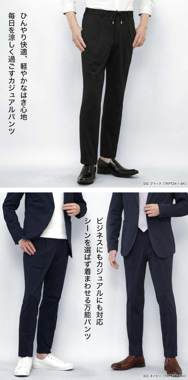夏でもサラリと着られる、清涼ストレッチパンツ