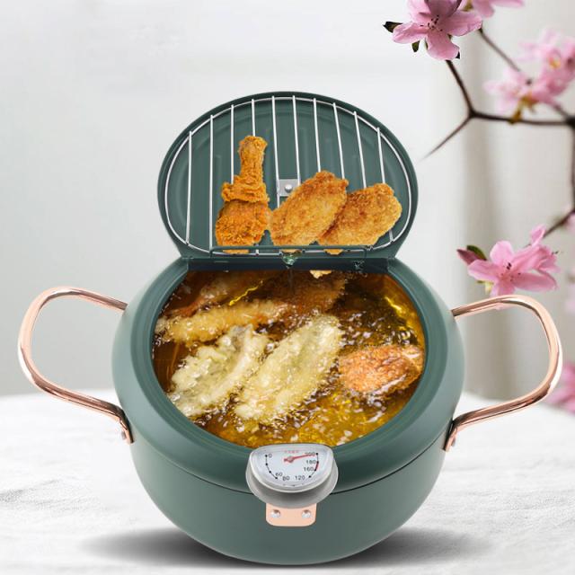 天ぷら鍋 揚げ物鍋 フライ鍋 油フライヤー ステンレス 蓋付 温度計付き 両手天ぷら鍋 深型 注ぎやすい 温度制御 油切りラック IH&ガス火対応 省油 油はねガード 分解可能 調理器具 家庭用 業務用 20cm