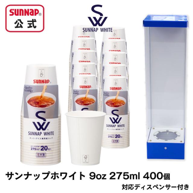 ディスペンサー付 SW サンナップホワイト 紙コップ 275ml 9oz 400個入 9オンス 東罐興業 業務 業P カップディスペンサー付 日本製