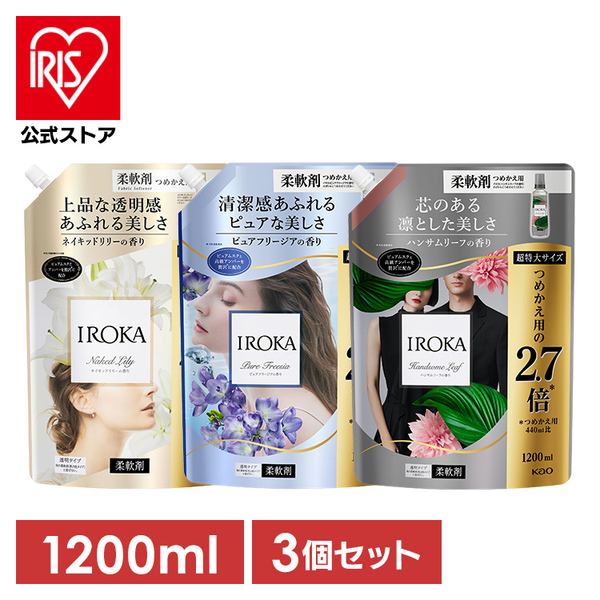 【3個セット】柔軟剤 イロカ 詰め替え IROKA スパウト 1200ml KAO iroka イロカ 花王 FLAIR 柔軟剤 詰替え つめかえ 洗濯 大容量 IROKA