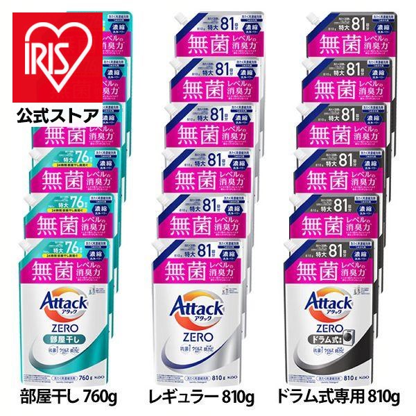 【6個セット】洗濯用洗剤 花王 衣類用洗剤 アタックZERO つめかえ用 760g/810g KAO 全3種類 詰替え用 液体洗剤 洗浄力 AttackZERO 無菌レベル 消臭力 まとめ買い 送料無料