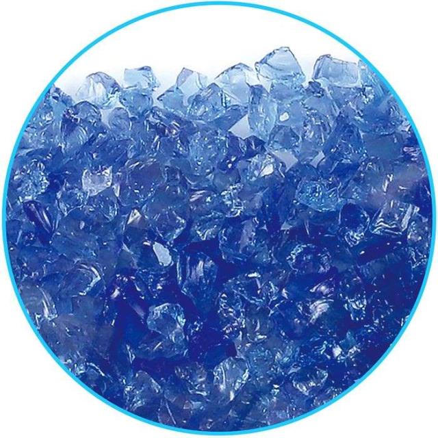・粒度2.5〜5.0mm・角は削られていて安全・廃ガラスやあきびんなどを破砕プラントで砕いて粒状にした製品。