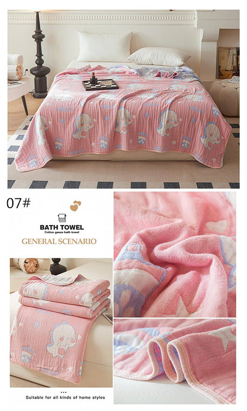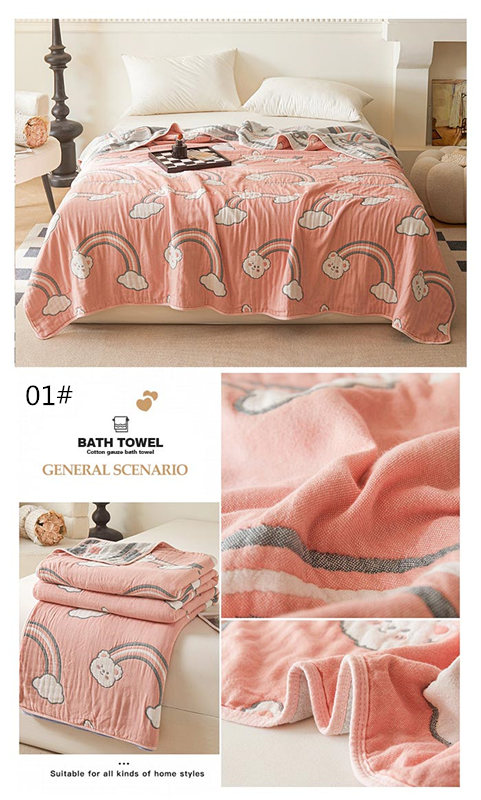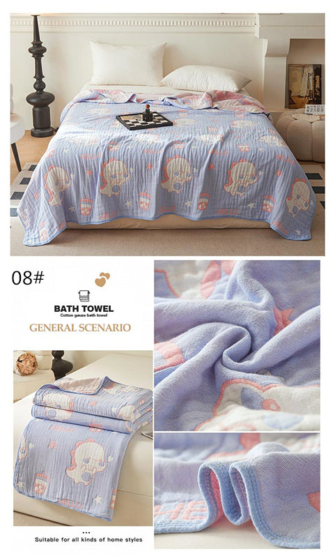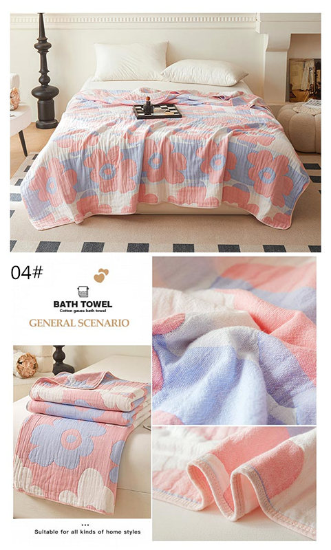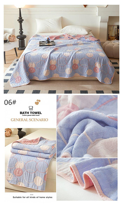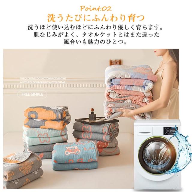 【とろけるような肌ざわり】 通気性の良いガーゼを6重にすることで、ふんわりやわらか、軽い掛け心地に。 洗うたびにくったりとやさしい風合いになるのもガーゼの特徴。 汗をかいて洗って、また使って…の繰り返しが好きになる、夏に嬉しいガーゼケットです。