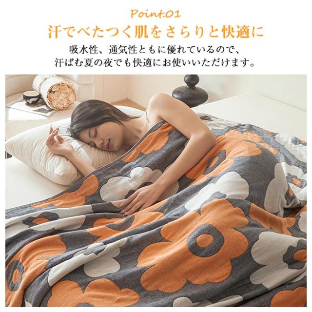 【吸水性の高い、綿100%素材】 吸水性、吸湿性の良い綿100%のガーゼなので、汗を良く吸い湿気をこもりにくくします。寝汗が気になる夏に嬉しい、さらりとした掛け心地の夏用ケットです。