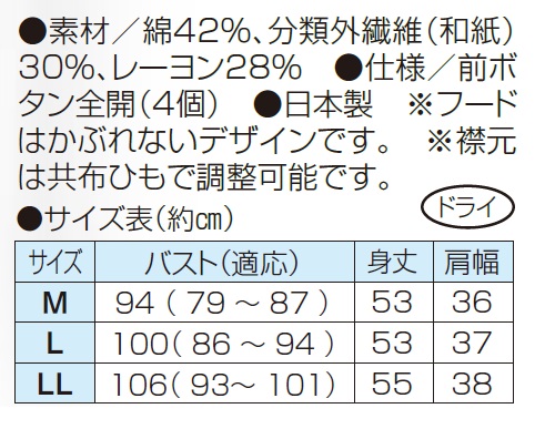 ※襟元は共布ひもで調整可能です。