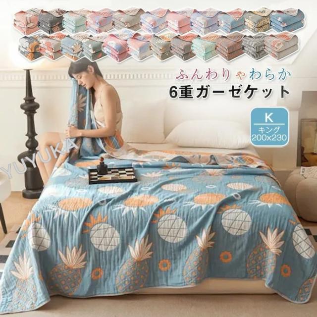 ガーゼケット 6重 ブランケット ガーゼ タオルケット ダブル キング 200×230cm 綿100% コットン 無添加 軽量 丸洗いOK 夏 洗える 肌掛け 夏掛け ケット 寝具 夏用 オールシーズン 送料無料 2024新作