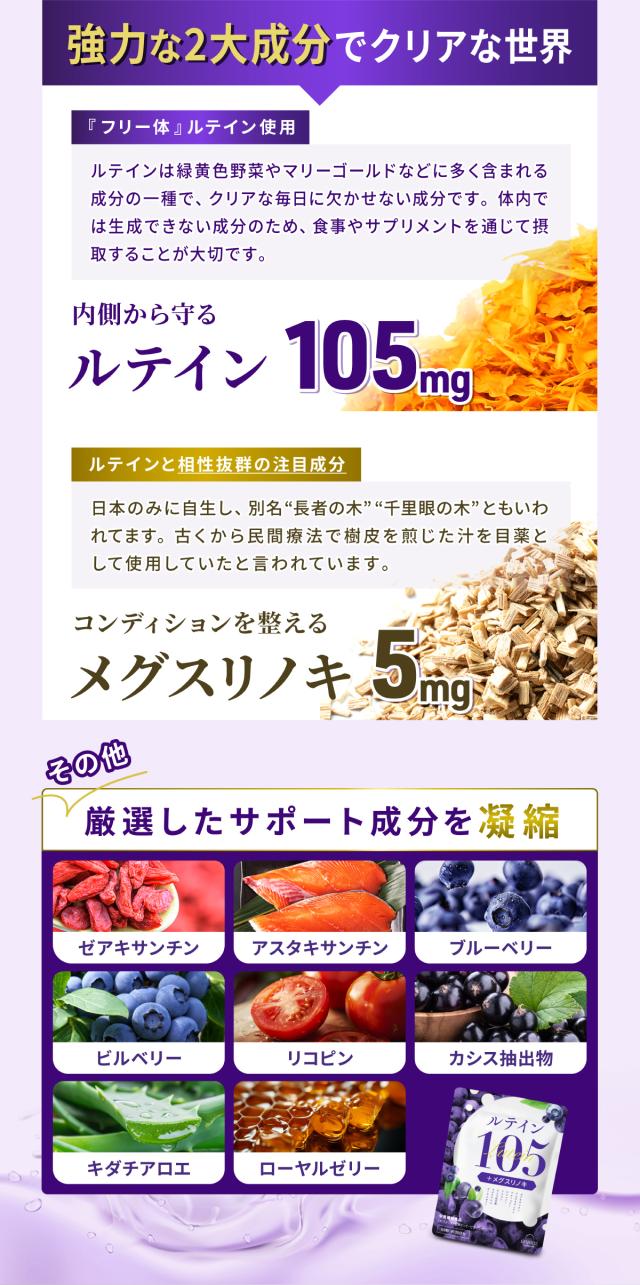 【ルテイン配合量105mg】業界トップクラスのルテイン配合でクリアな世界をサポート
