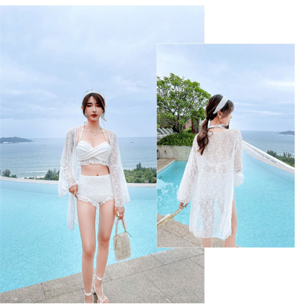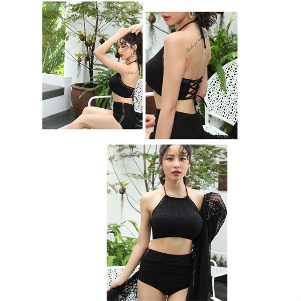 水着 レディース 3点セット ビキニ水着 レース 体型カバー セパレート 短パン水着 美肩 スイムウェア ホルターネックトップス 小胸バンドゥ